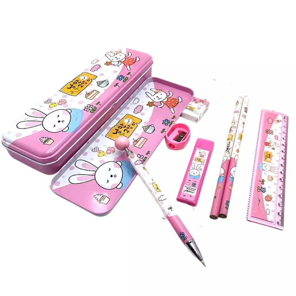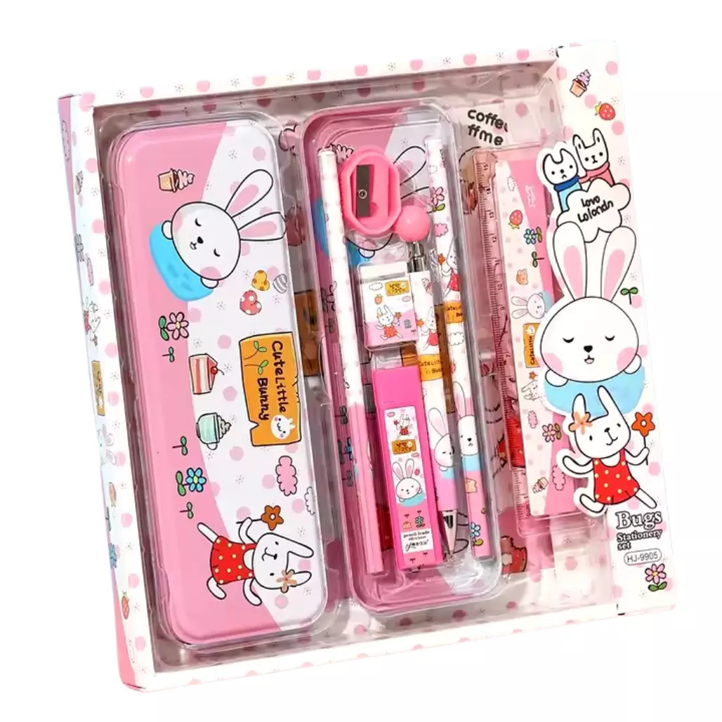 Пенал шкільний «Кролики» з канцелярським приладдям для школи в комплекті