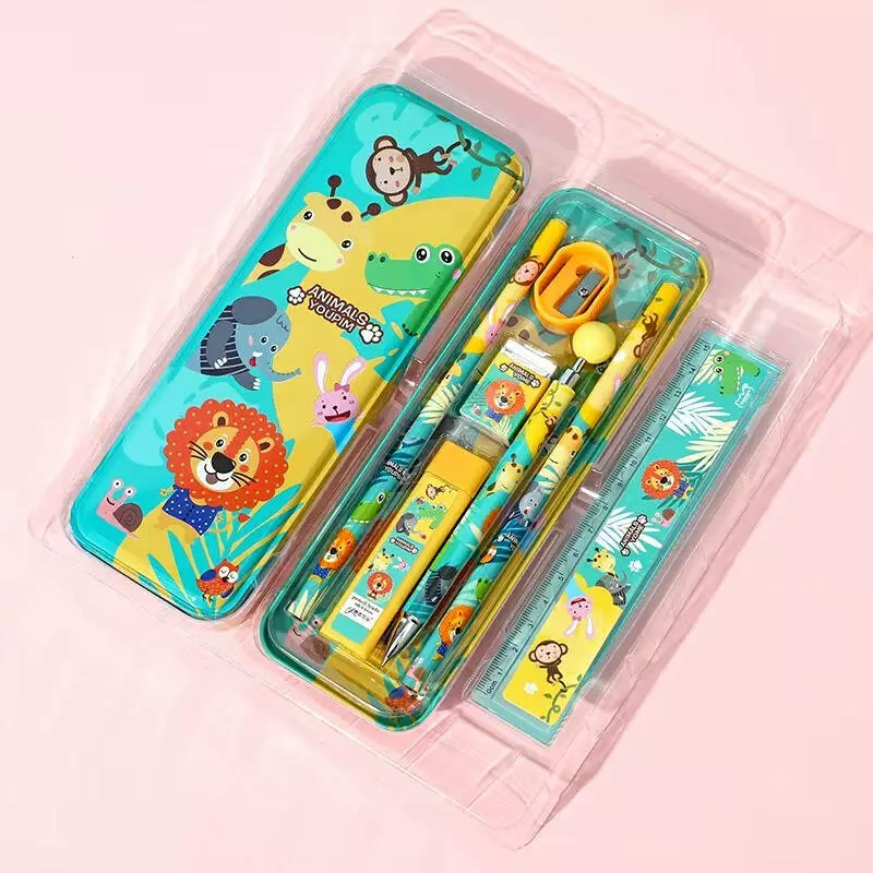 Пенал шкільний «Звірята» з канцелярським приладдям для школи в комплекті