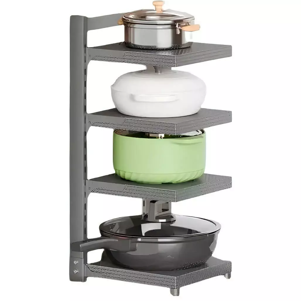 Полиця-підставка для каструль кухонна чотирирівнева з вуглецевої сталі з чотирма знімними полицями, сіра