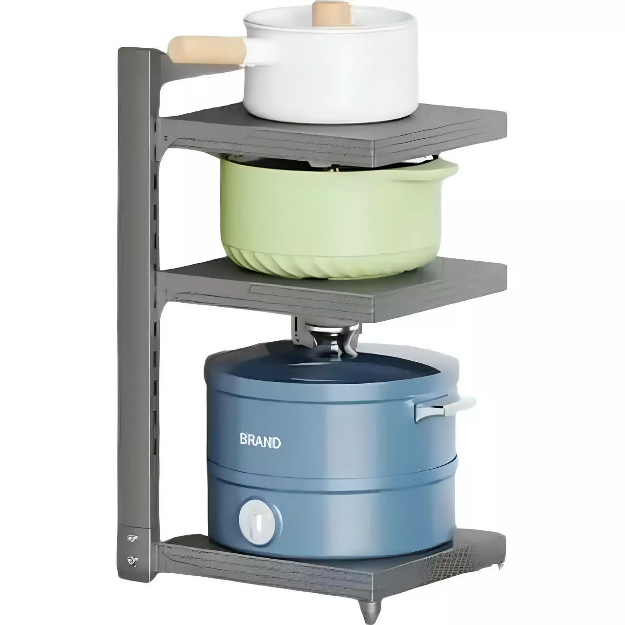 Підставка-полиця для каструль кухонна трирівнева з вуглецевої сталі з трьома знімними полицями, сіра