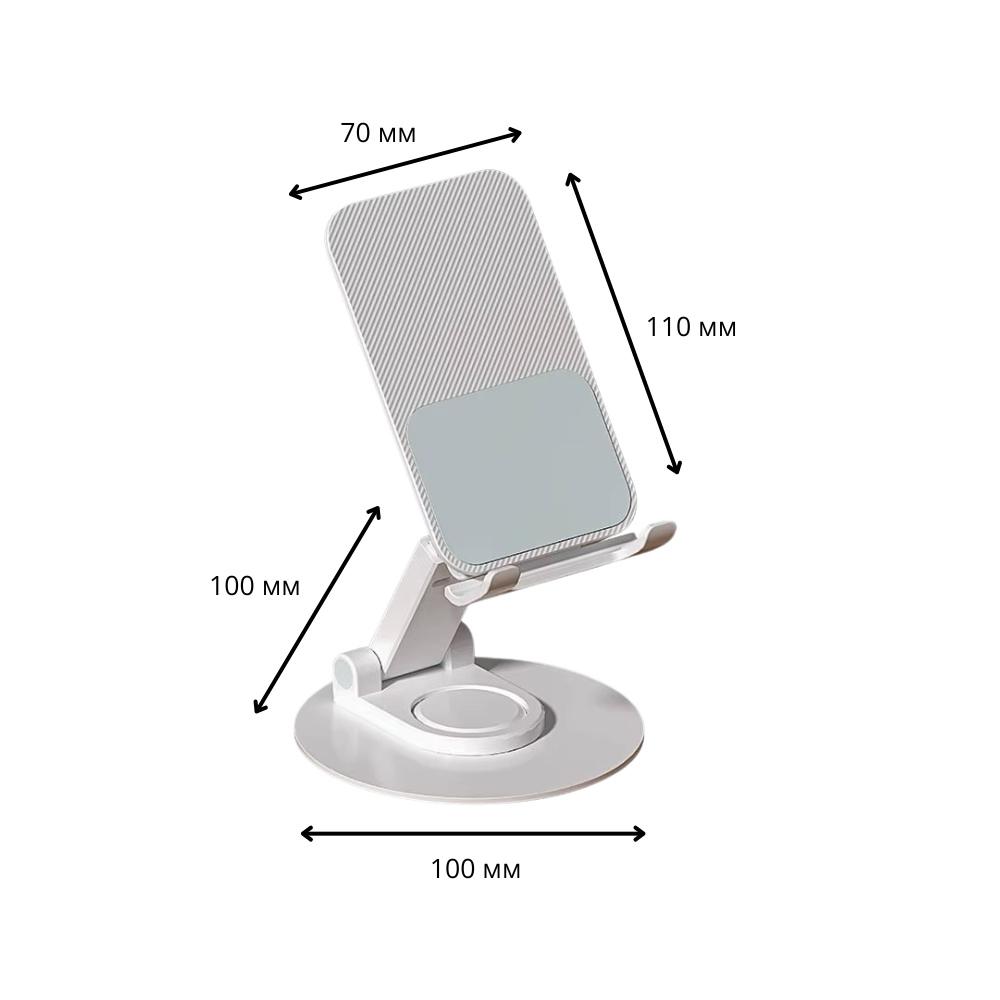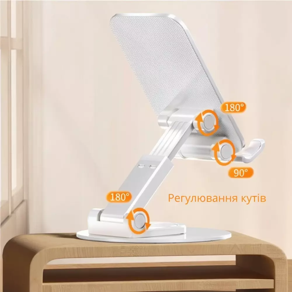Підставка-тримач настільна для телефону або планшета, холдер для сматрфона, складна, з поворотом на 360 біла