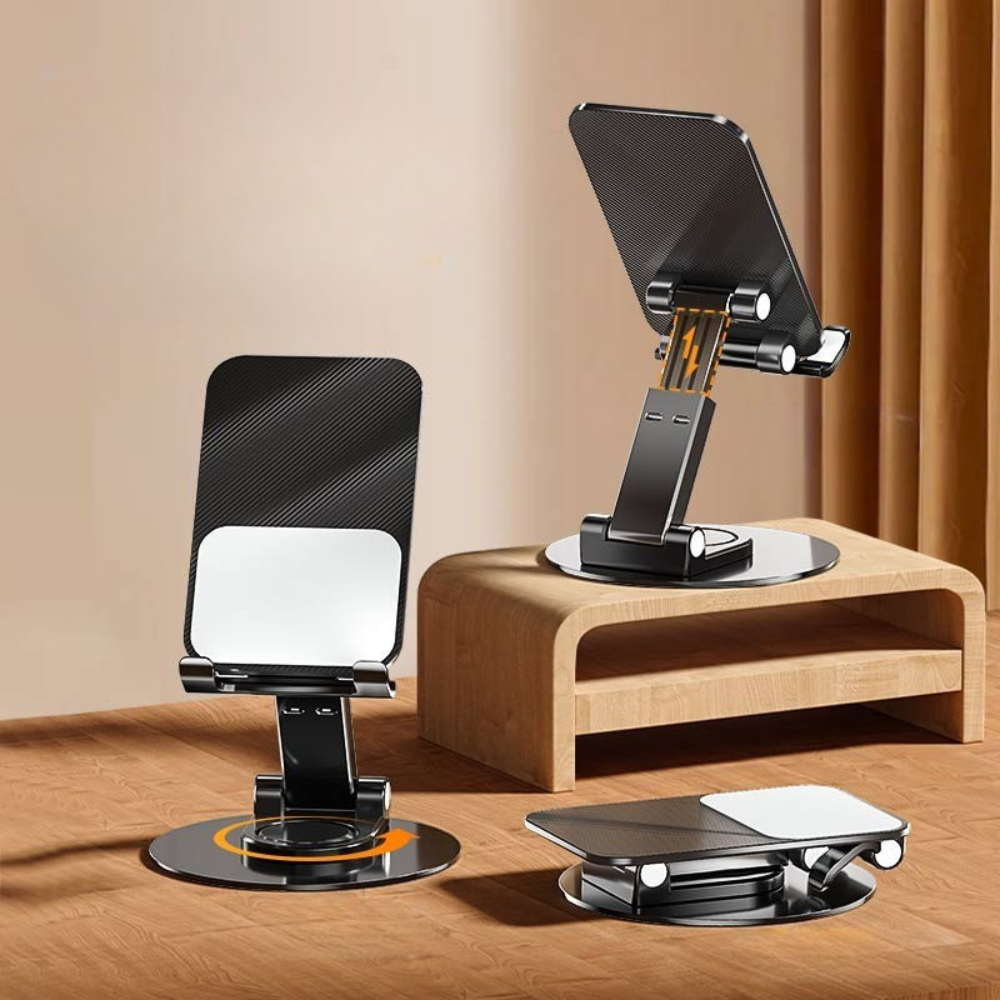 Підставка-тримач настільна для телефону або планшета, холдер для сматрфона, складна, з поворотом на 360 чорна