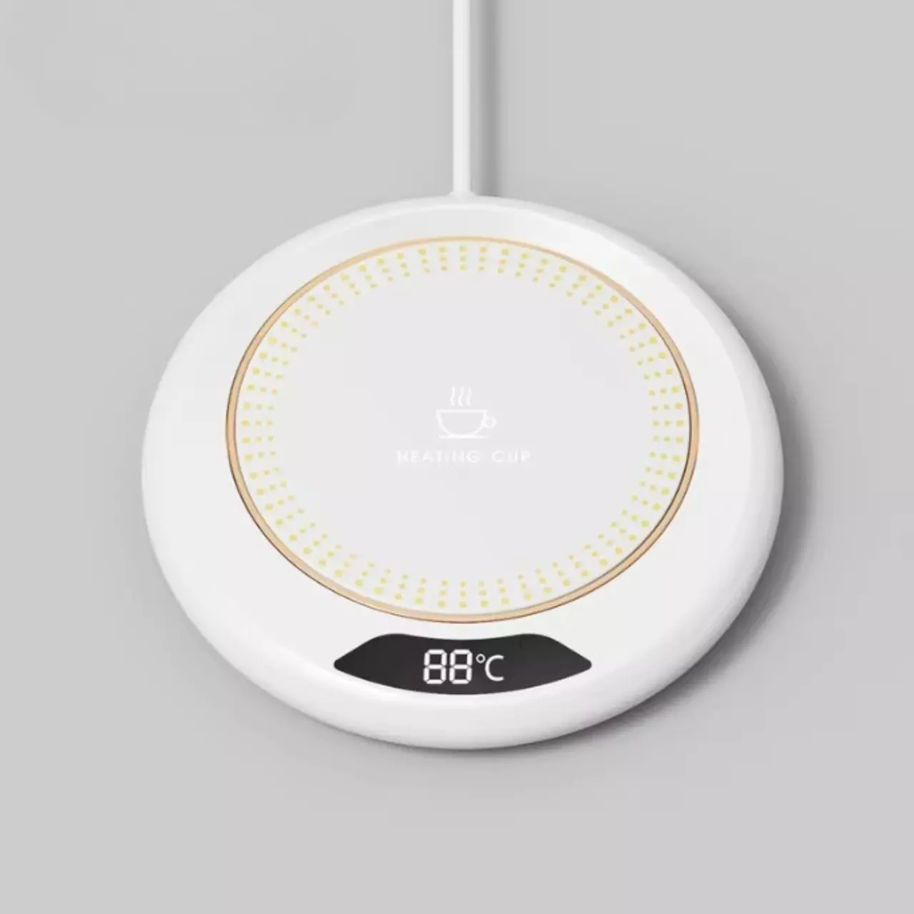 Підставка з підігрівом для напоїв, термонагрівач для чашки 20 Вт з USB-дротом і індикатором температури, білий