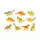 Набір включає 6 машинок у вигляді будівельної техніки, 10 фігурок динозаврів, лопату, ролер з відбитками слідів, 6 форм для створення лапок замку, 5 інструментів для ліплення і 2 фігурки дерев. Всі елементи допомагають розвивати дрібну моторику, уяву і творчі навички дитини.