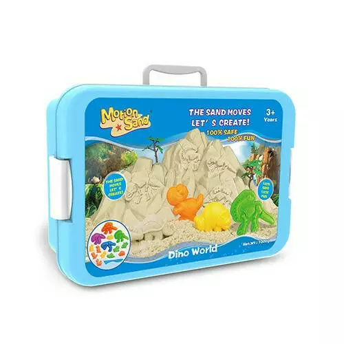 У наборі є 14 різнокольорових формочок у вигляді динозаврів, а також пластиковий ніж для акуратного видалення залишків піску. Іграшка повністю безпечна, нетоксична та підходить для дітей від 3 років. Розмір упаковки – 40х26х9 см.