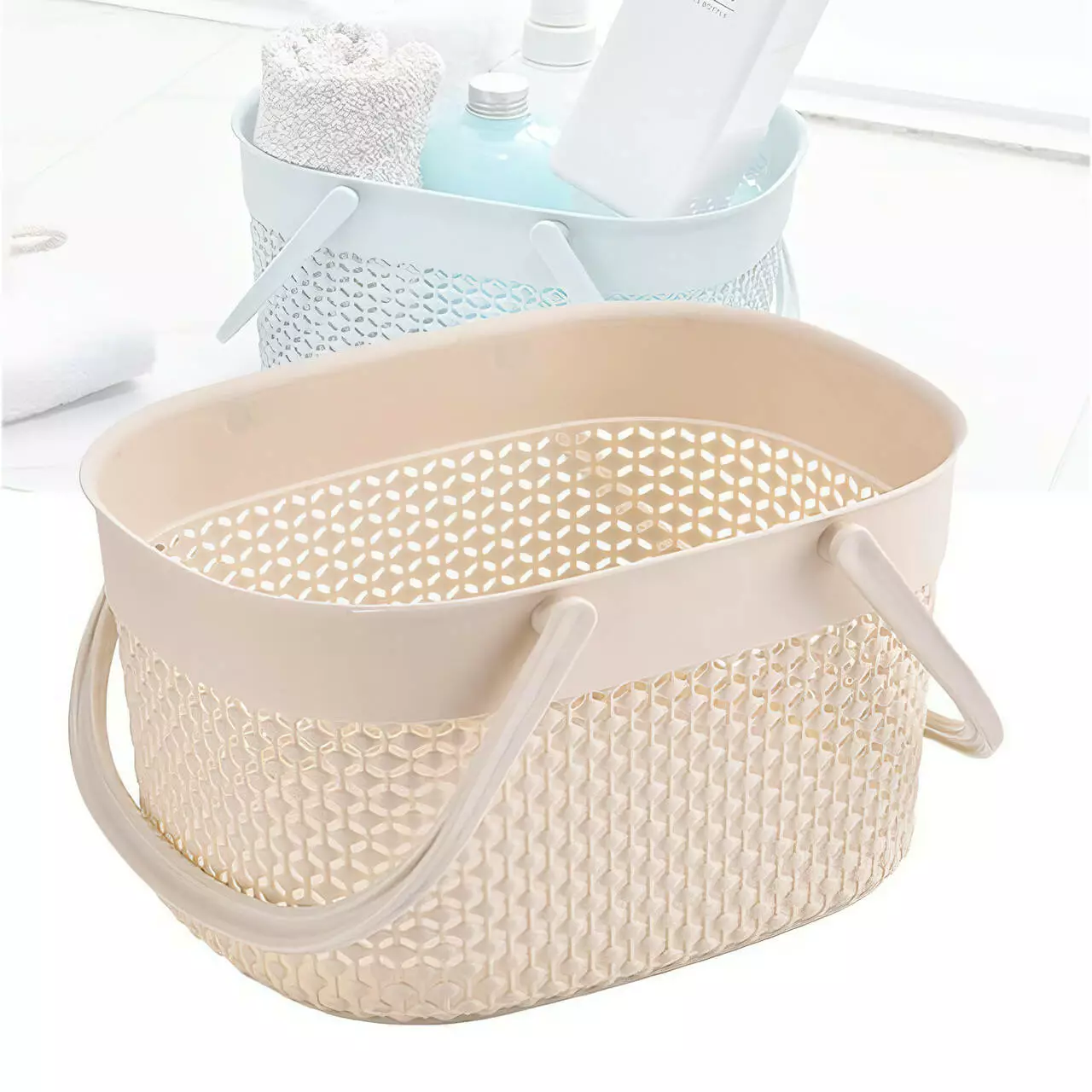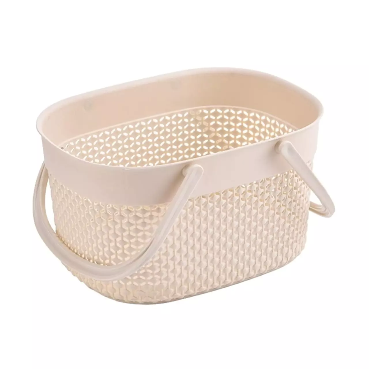 Пластиковий кошик з ручками, 26×15×20см, органайзер для дому, кошик для ванної, бежевий колір