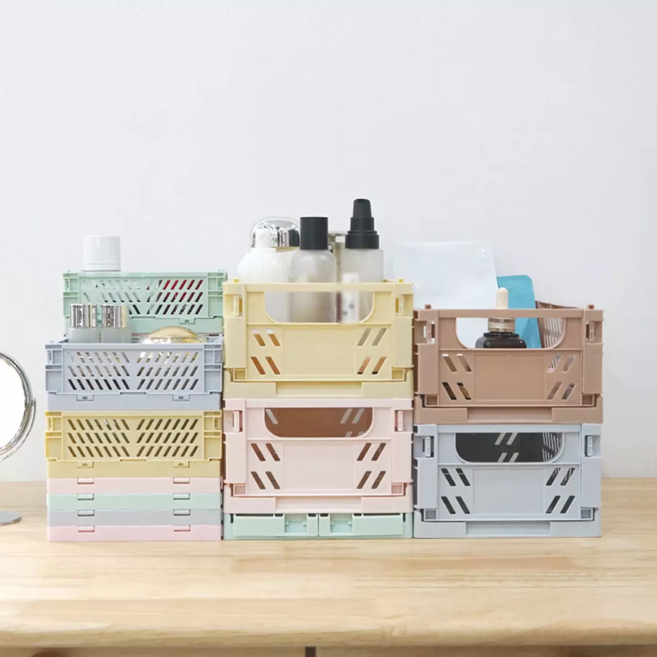 Унікальна складна і штабельована конструкція дає змогу економити місце, коли кошик не використовується, та ефективно організовувати простір, створюючи порядок у вашому домі. Він ідеально підходить для зберігання косметики, іграшок, книг, кухонних приправ та інших дрібниць.