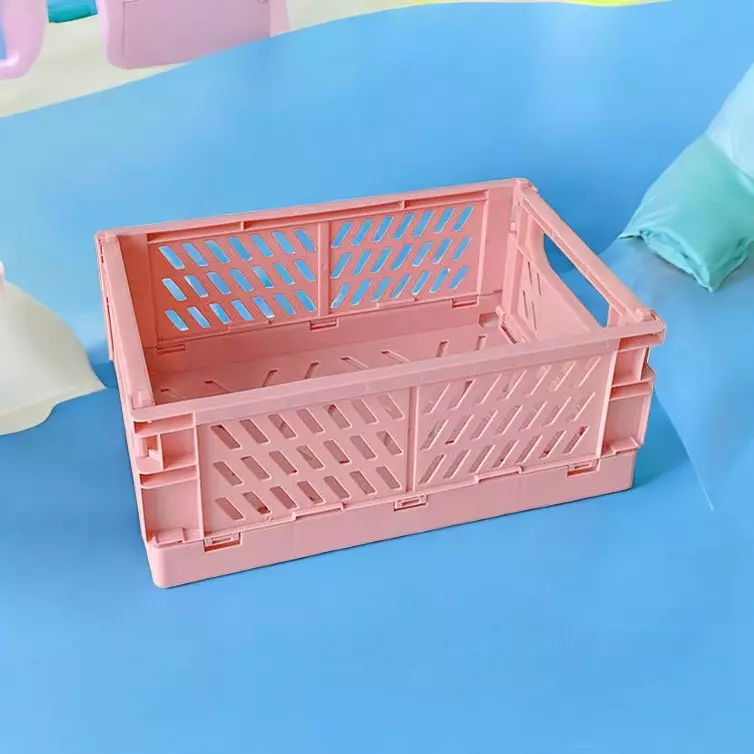 Пластиковий органайзер, складний кошик для зберігання, контейнер з ручками, 15×9.8×5.7см, колір рожевий