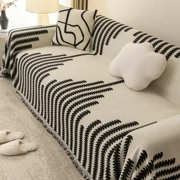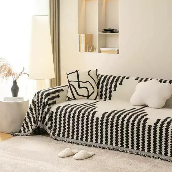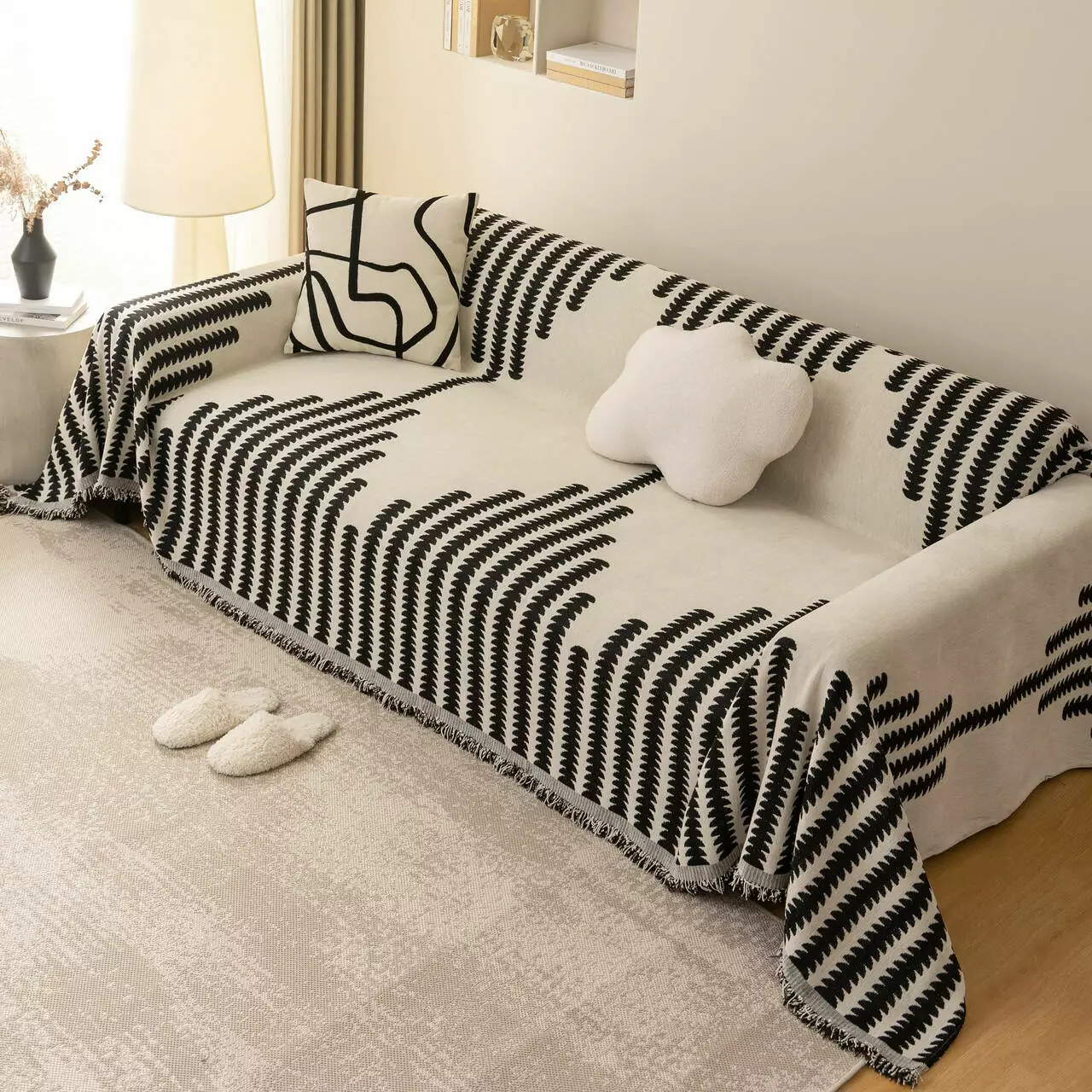 Плед покривало для дивана і ліжка, чохол накидка для м'яких меблів 180х230 см, біло-чорний з візерунком