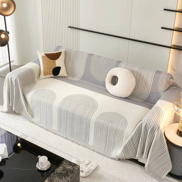 покривало або накидка для м'яких меблів. Біло-сірий геометричний