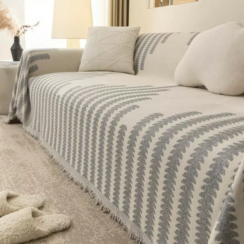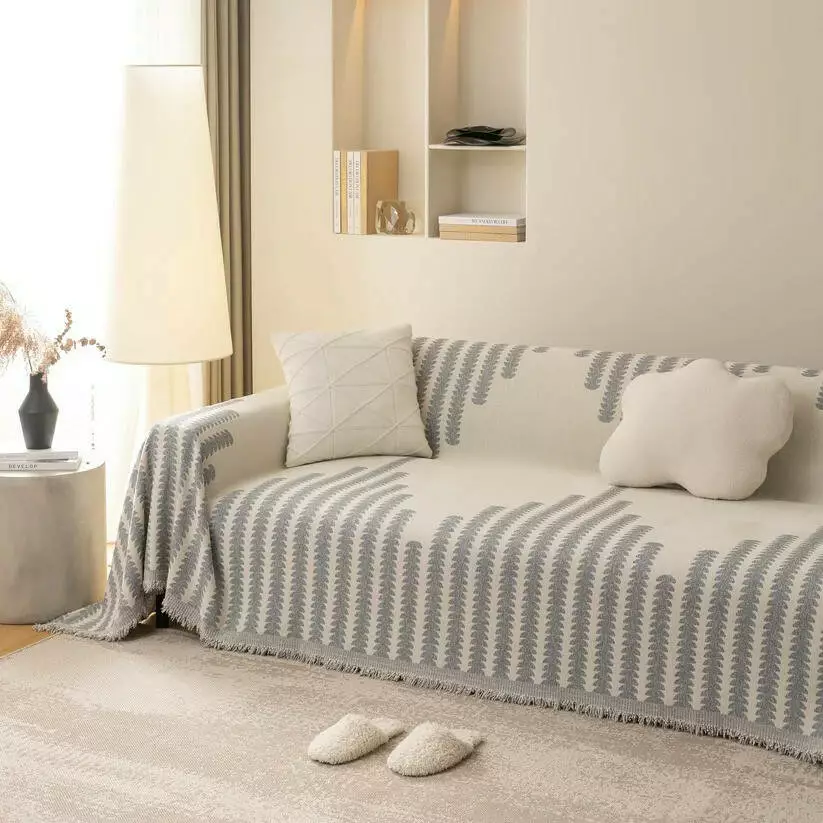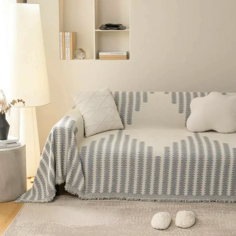 Плед покривало для дивана і ліжка, чохол накидка для м'яких меблів 180х230 см, біло-сірий з візерунком