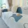 синіми листям на білому тлі, доповнено акуратною бахромою по краях.