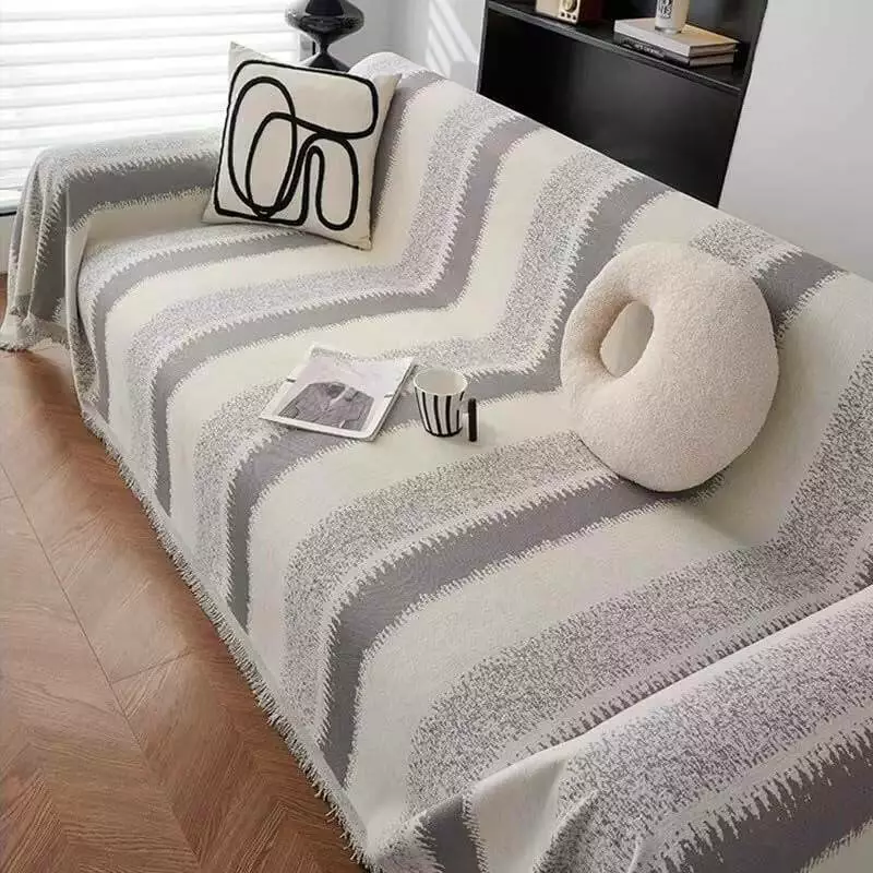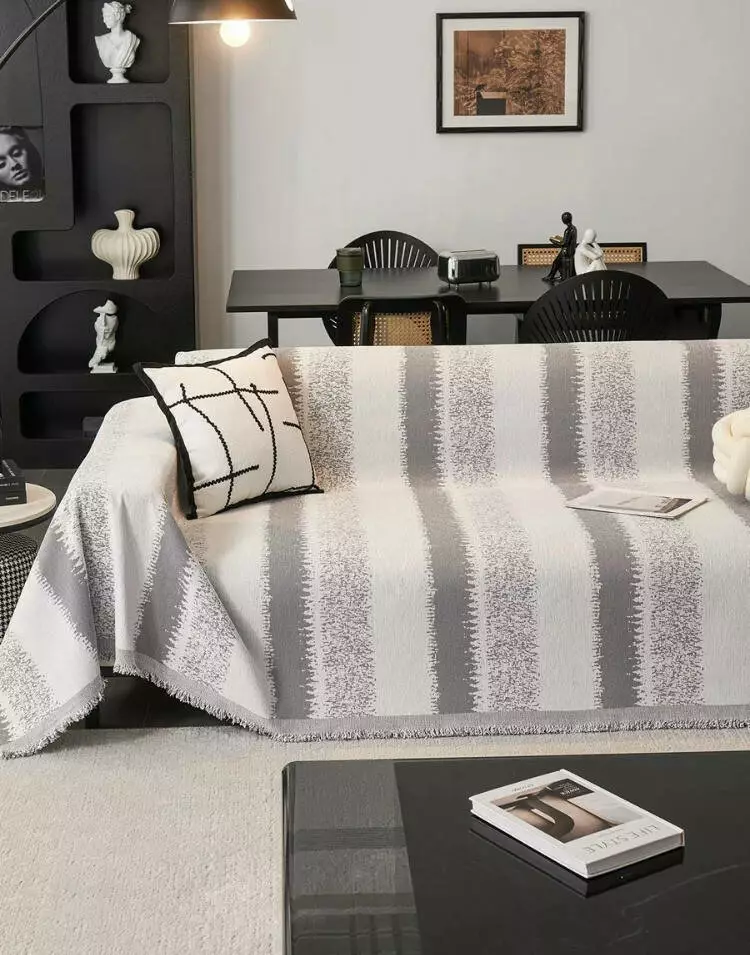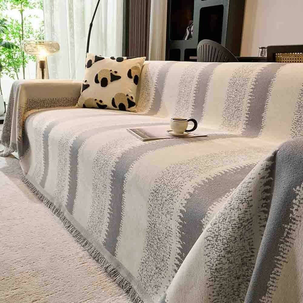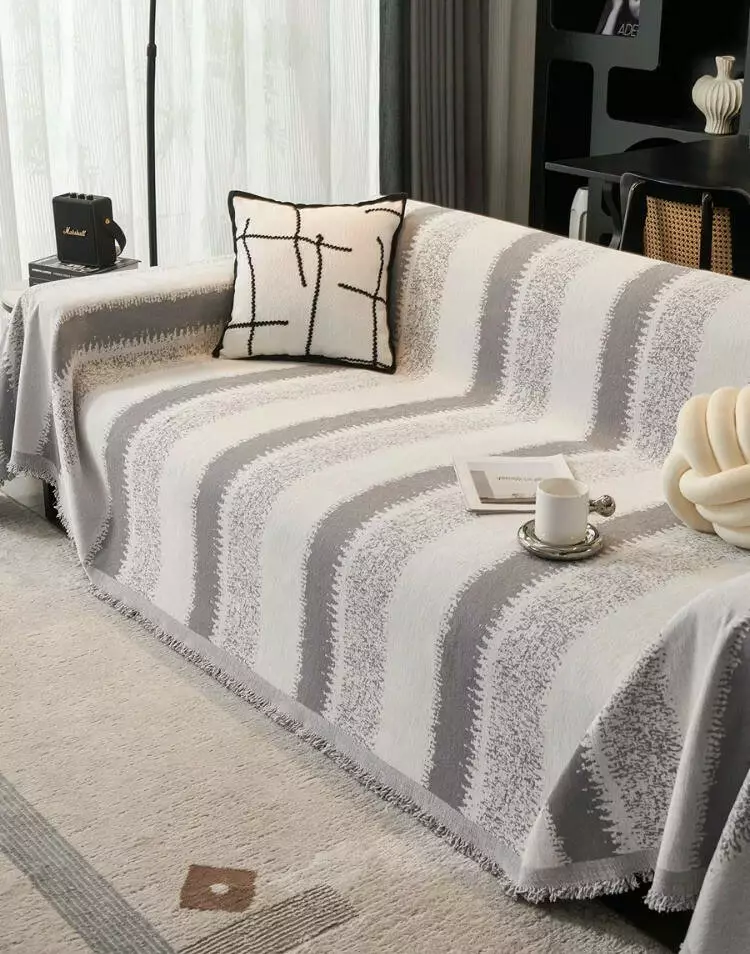Плед-покривало на диван або ліжко, чохол-накидка на м'які меблі 180х300 см, біло-сірий