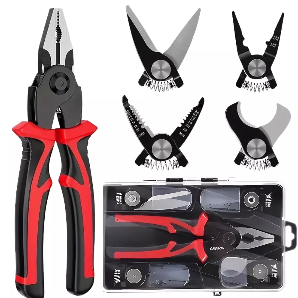 Плоскогубці набір багатофункціональний 5в1 зі змінними насадками, мультитул в пластиковому кейсі