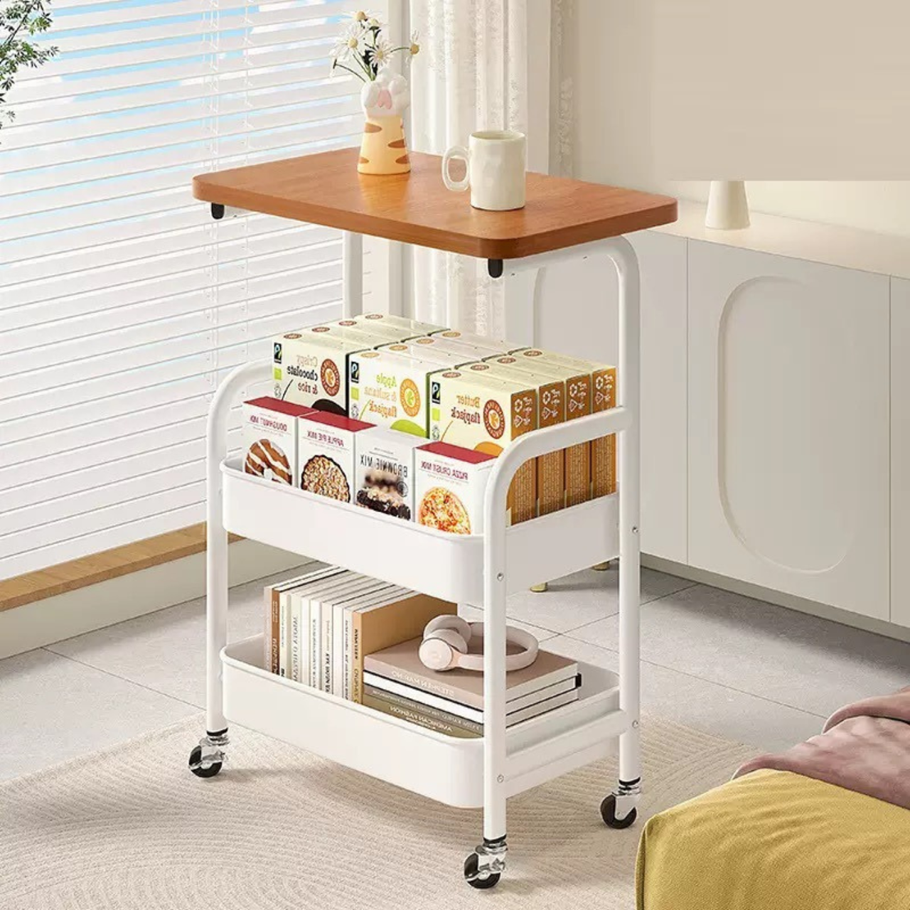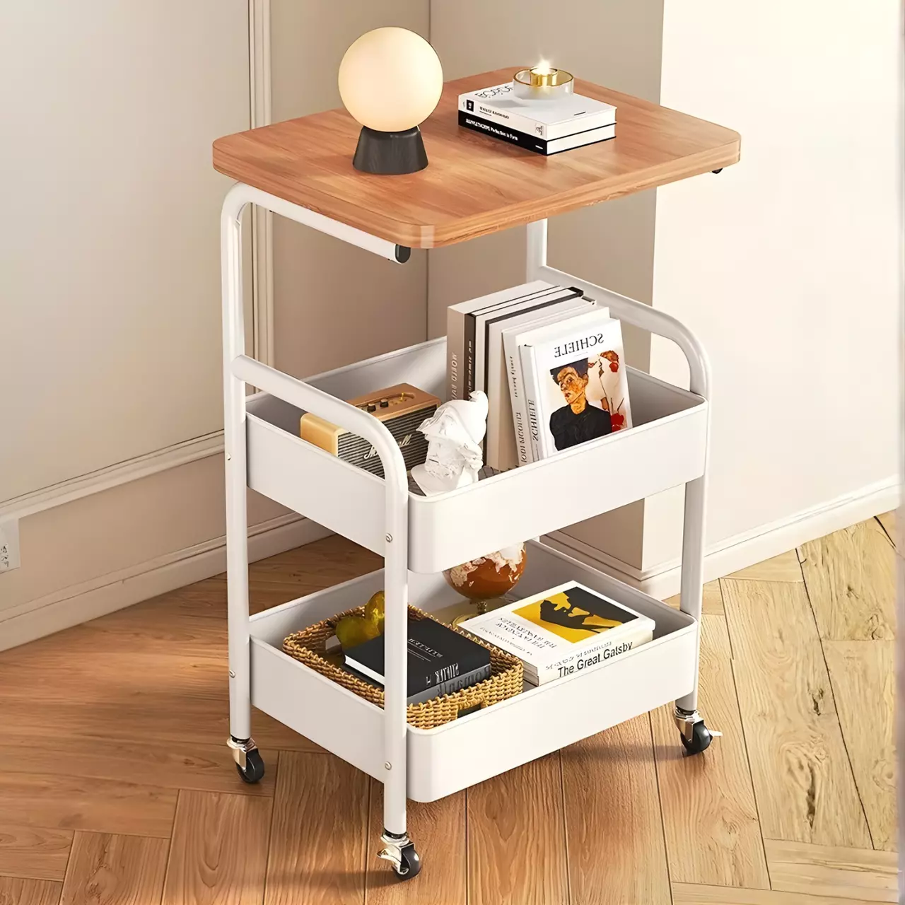 Полиця 3-ярусна для зберігання, металева пересувна тумба для спальні, кухні, приставний столик на коліщатках