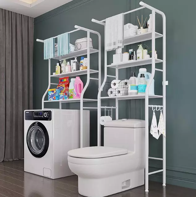 Стелаж для ванної, дуже міцний і довговічний. Він може ефективно використовувати невикористаний простір над пральною машиною, створюючи кілька додаткових місць для зберігання в переповненій ванній кімнаті. Ідеально підходить для маленької ванної або пральні.