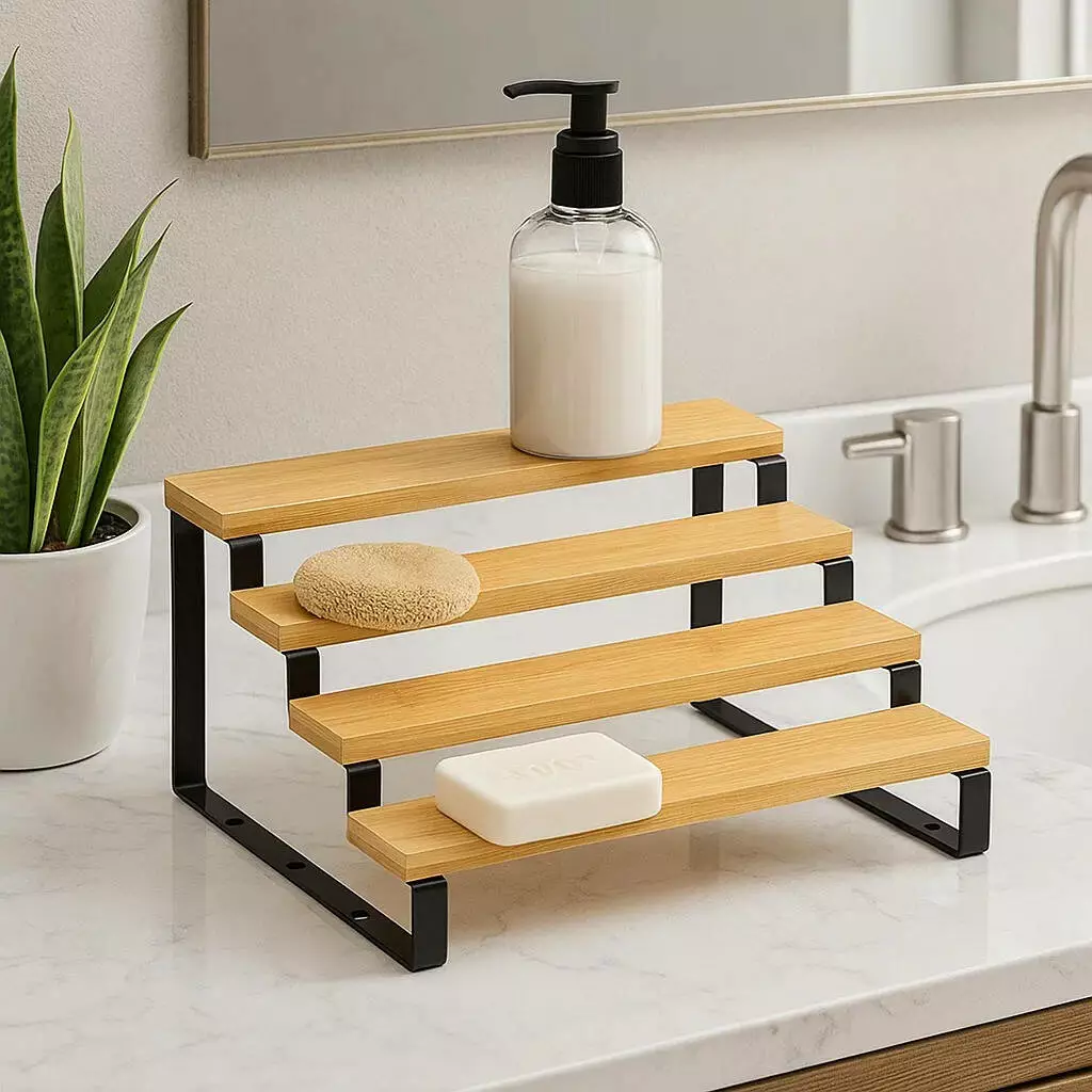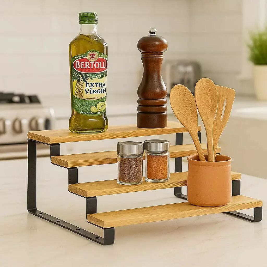 Багатоярусна ступінчаста полиця ідеально підходить для організації