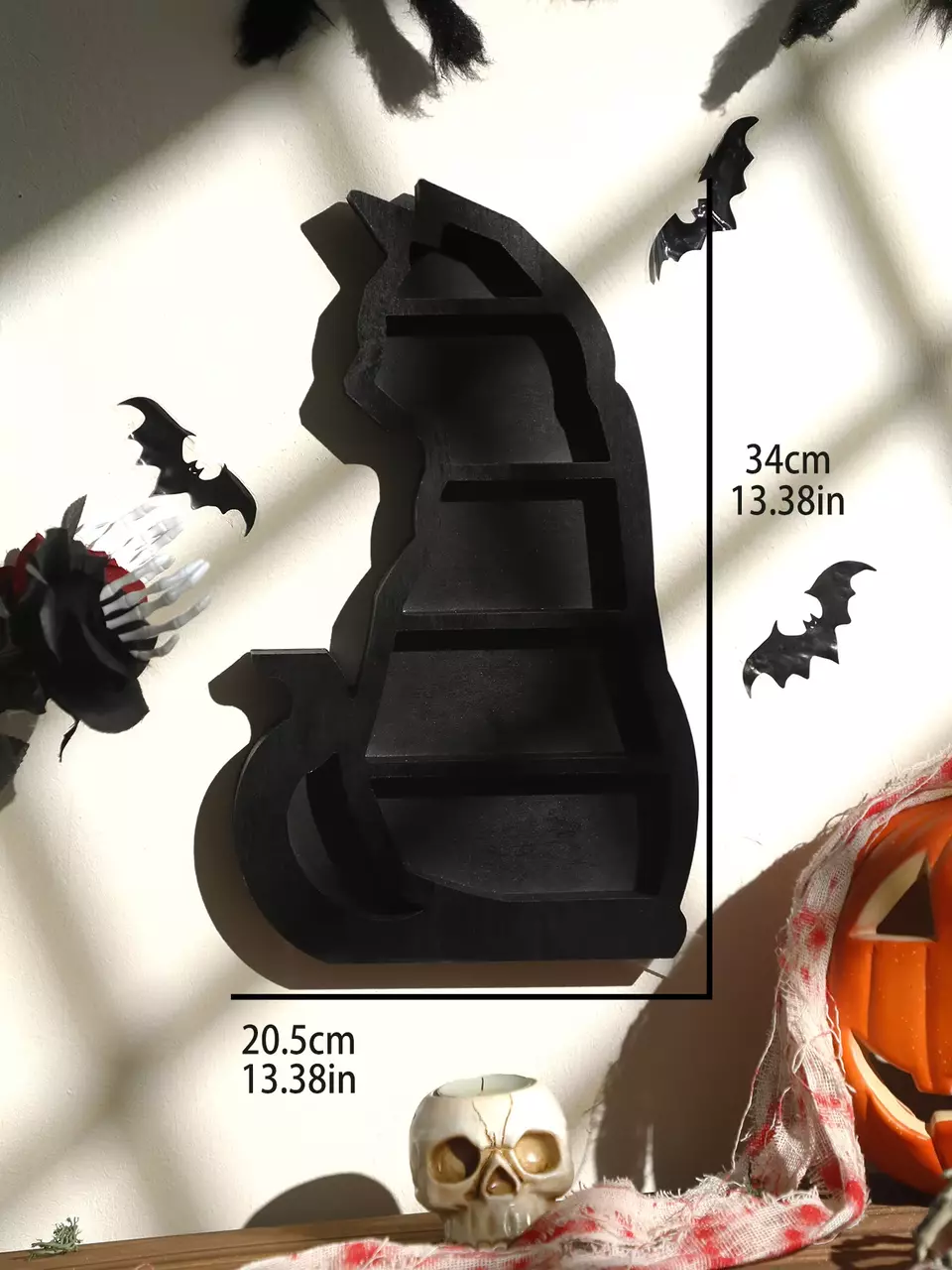 Полиця настінна з дерева Кішка, полиця дерев'яна для для прикрас, чорна, в розмірі 34×20.5см