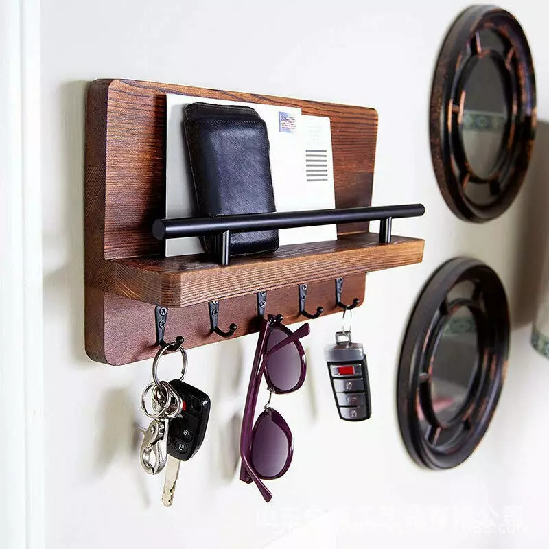 П'ять металевих гачків дозволяють зручно розмістити ключі, окуляри, брелоки, кухонні рушники або прихватки — все, що має бути під рукою. Натуральне дерево надає виробу міцності, довговічності та естетичного зовнішнього вигляду, а компактні розміри роблять його універсальним навіть для невеликих приміщень.