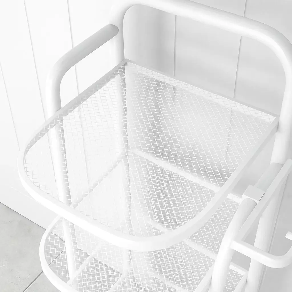 Етажерка виготовлена з міцного та легкого матеріалу, стійка до навантажень і легко вписується в будь-який інтер’єр. Завдяки компактним розмірам (25 × 28,5 × 106 см) займає мінімум місця, але при цьому залишається місткою.