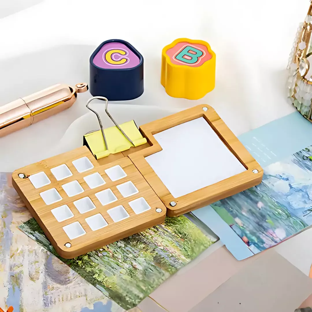 Портативна міні-палітра для акварелі, складна, дерев'яна, компактний розмір 15×7.5×0.8 см, для художників