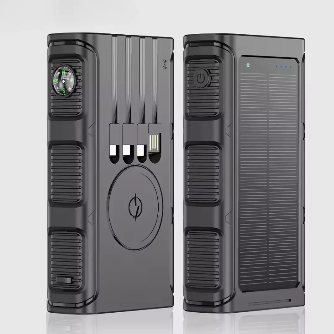 Портативний зовнішній акумулятор, павербанк на сонячній батареї з бездротовою зарядкою 20000мАч Black