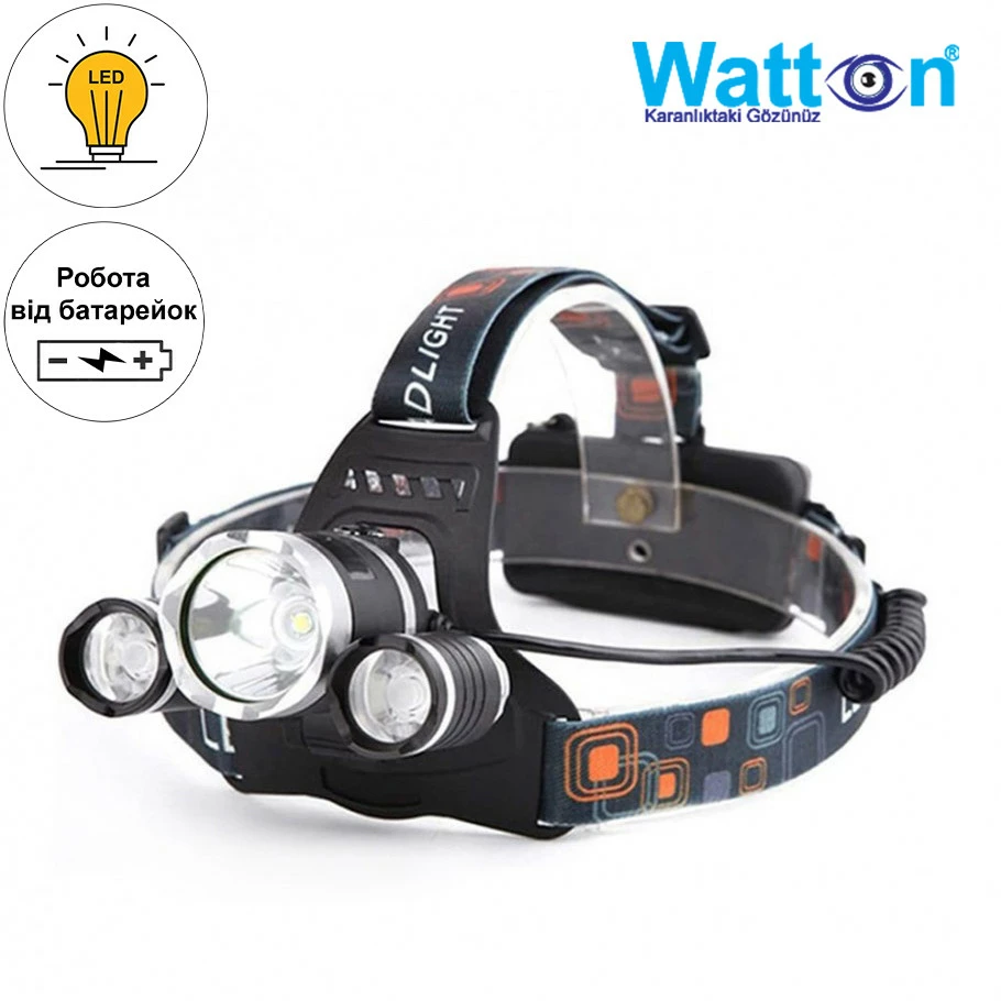Потужний налобний акумуляторний ліхтар WT-256 з 3 ліхтариками, 2 акумуляторні батареї 18650 зум на 250м