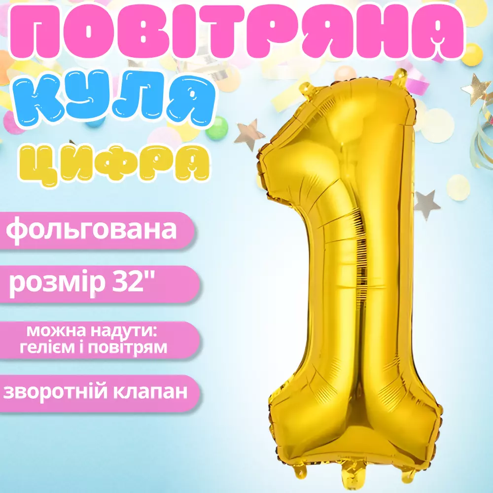 Фольгована повітряна кулька у вигляді цифри «1» — ідеальна прикраса