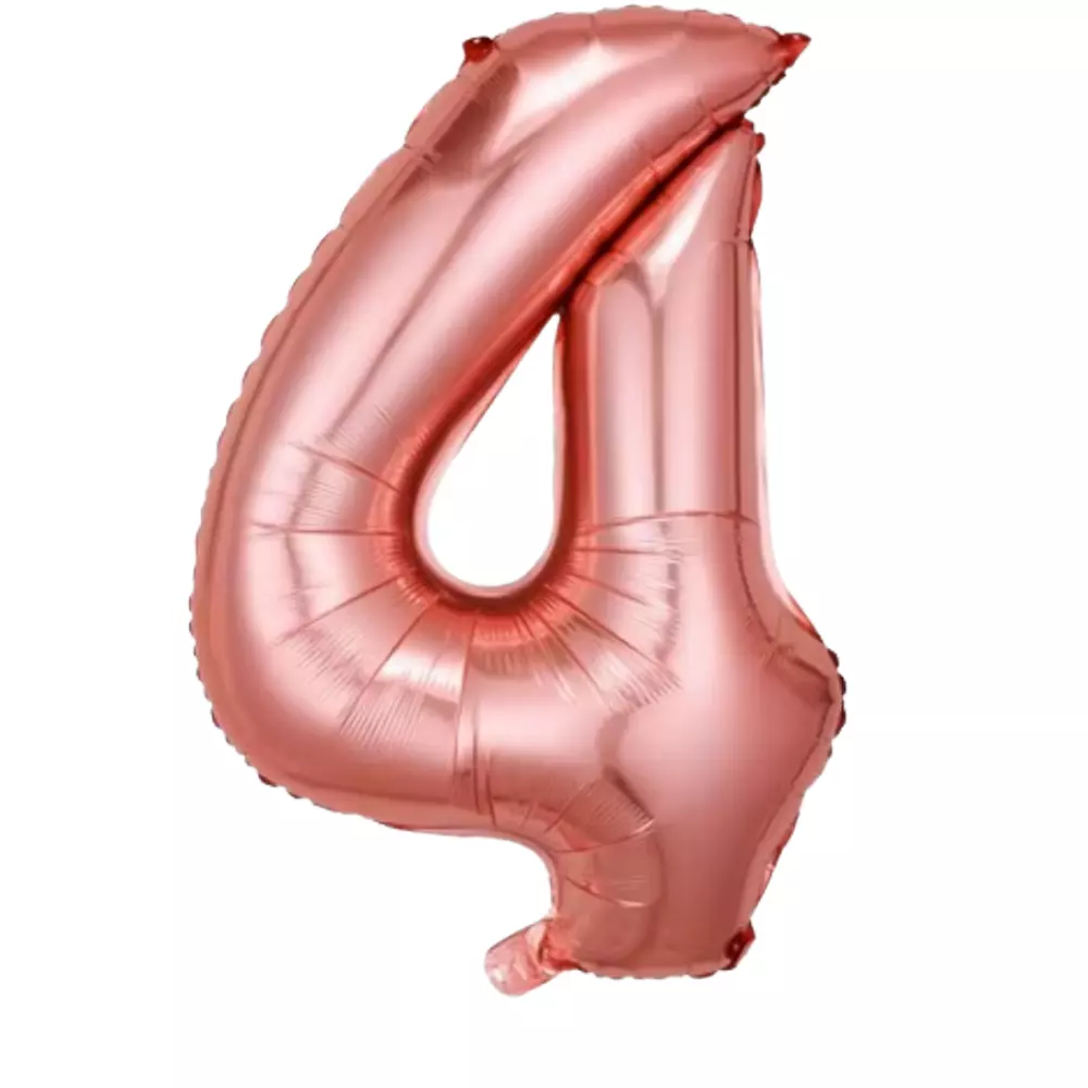 Фольгована куля у формі цифри «4» рожево-золотого кольору -