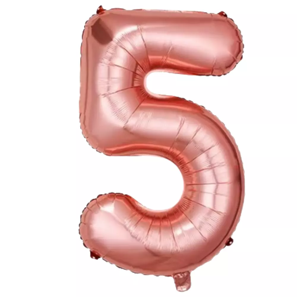 Фольгована куля у формі цифри «5» рожево-золотого кольору -
