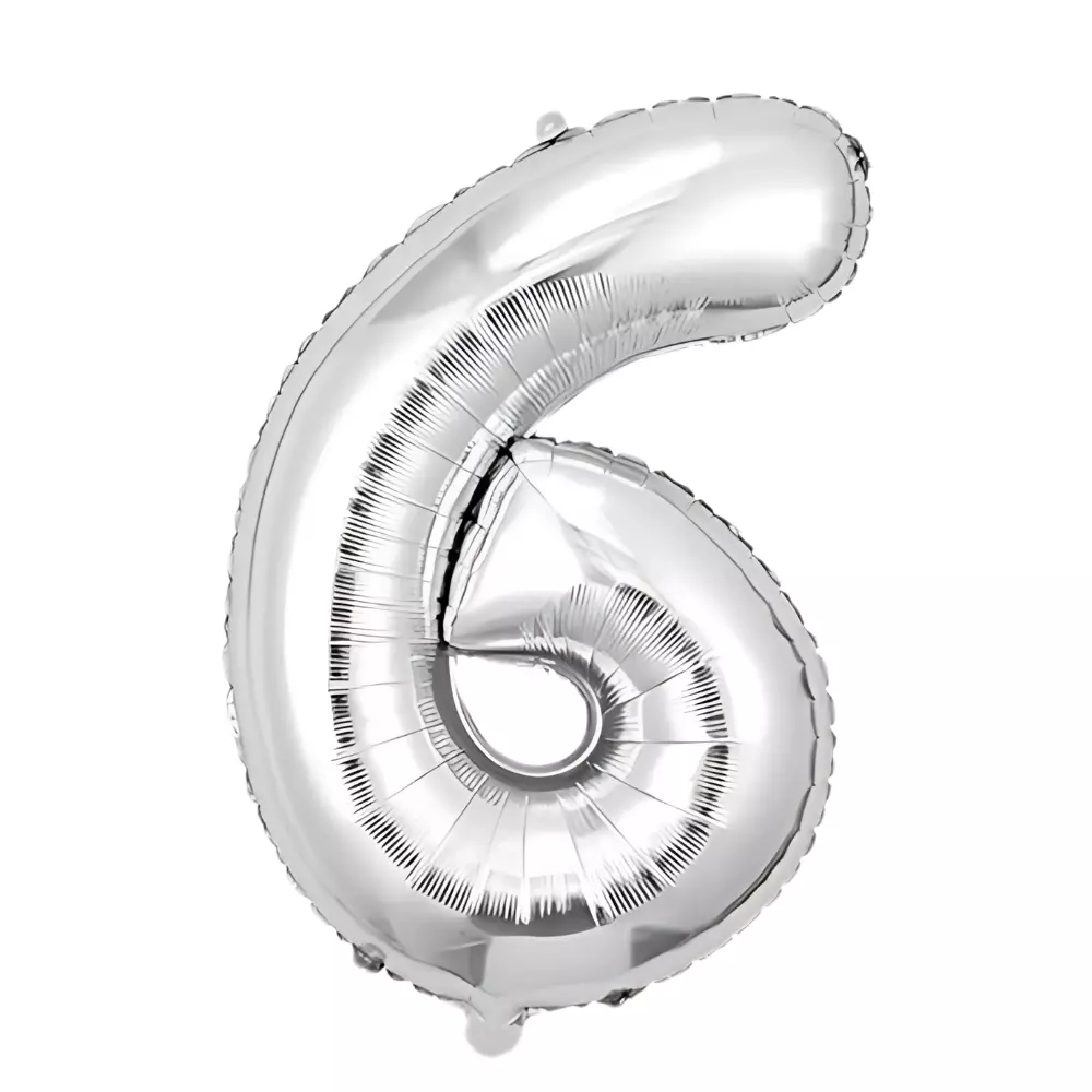 Фольгована кулька у вигляді цифри «6» срібного кольору — святкова і