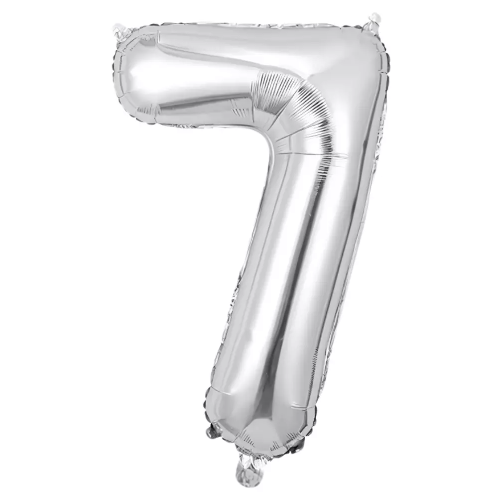 Фольгована кулька у формі цифри «7» срібного кольору — ефектний