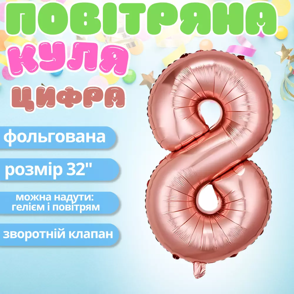 Фольгована куля у формі цифри «8» кольору рожеве золото - стильна
