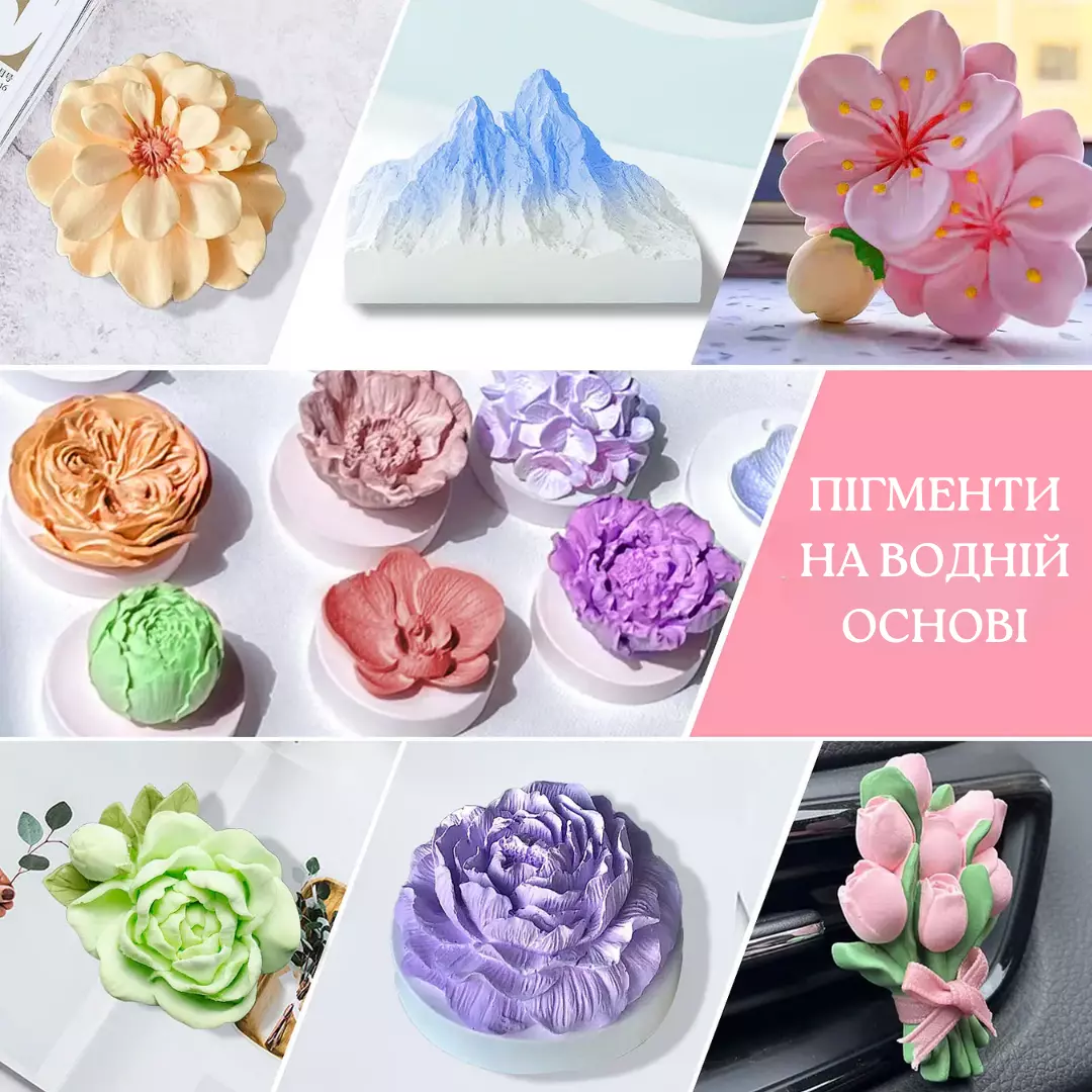 Додайте невелику кількість пігменту в гіпсову або бетонну суміш, ретельно розмішайте для рівномірного фарбування. Можна змішувати різні кольори для отримання унікальних відтінків.