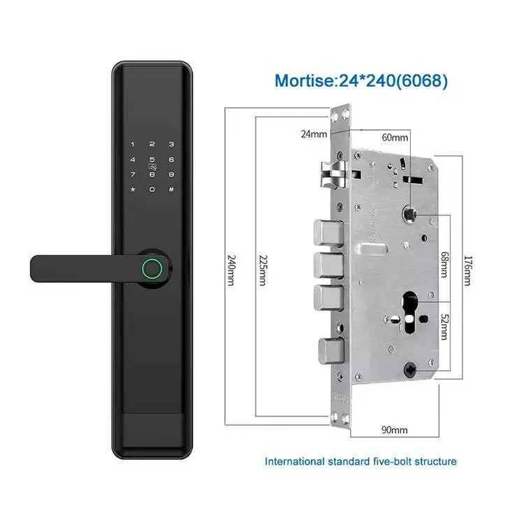 Замок оснащений біометричним сенсором відбитків пальців на зчитувачі для простого та швидкого доступу. Конструкція з алюмінієвого сплаву забезпечує довговічність і стійкість до корозії, а реверсивна ручка дає змогу зручного використання. Робоча температура пристрою варіюється від -20°C до +80°C, що робить його ідеальним для різних кліматичних умов. Крім того, замок оснащений резервним зовнішнім інтерфейсом Type-C для під'єднання в разі вимкнення живлення.