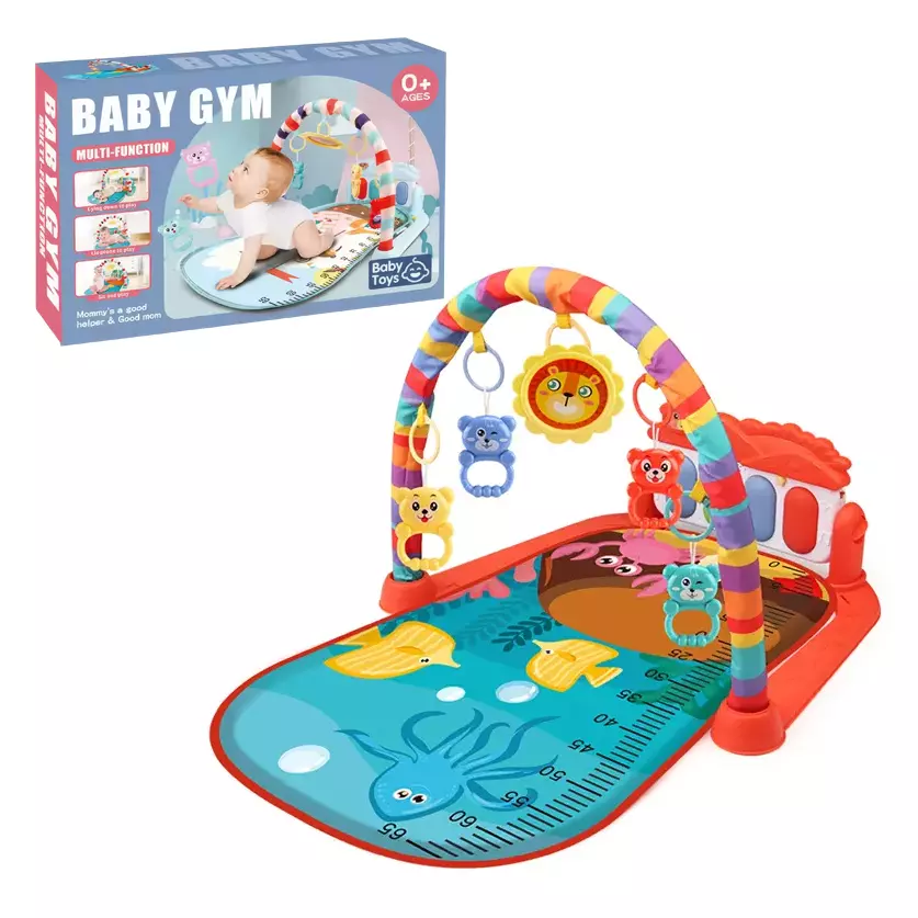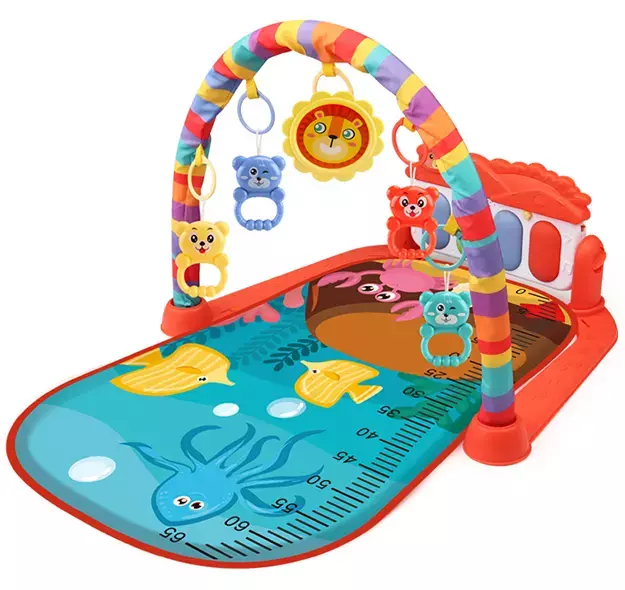Розвивальний килимок для дітей з музичним піаніно, підвісними іграшками, шкалою росту, морської тематики