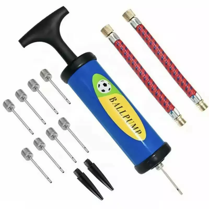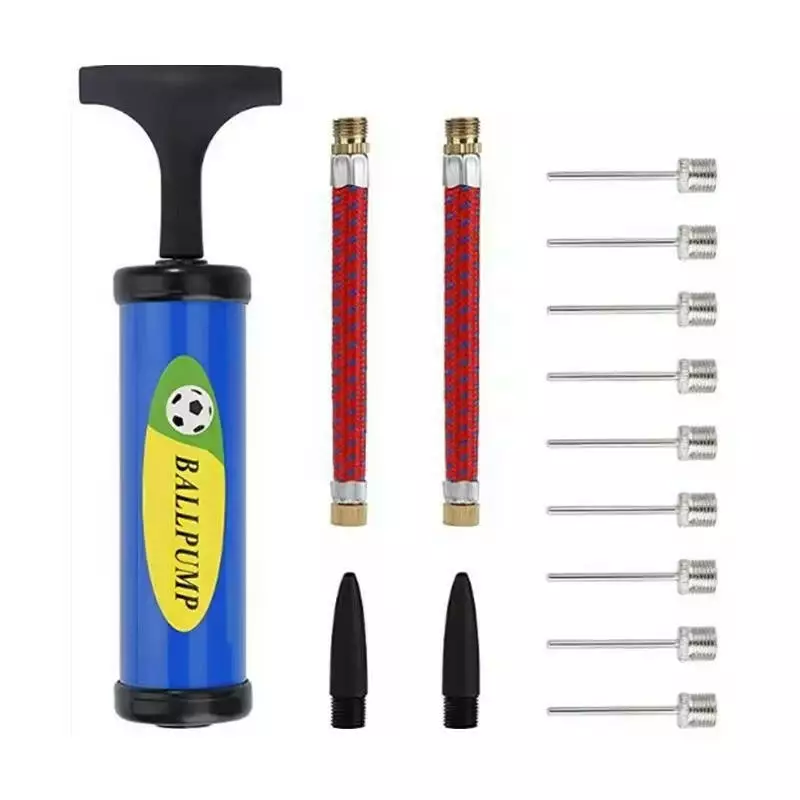 У комплекті з насосом ви отримаєте 14 аксесуарів, які забезпечать вам універсальність і комфорт в експлуатації. Набір включає 9 повітряних голок, 2 повітряні шланги, 2 пластикові повітряні сопла і сам насос. Металеві голки призначені для швидкого і надійного накачування м'ячів, а пластикові сопла і шланги роблять процес більш зручним і простим.