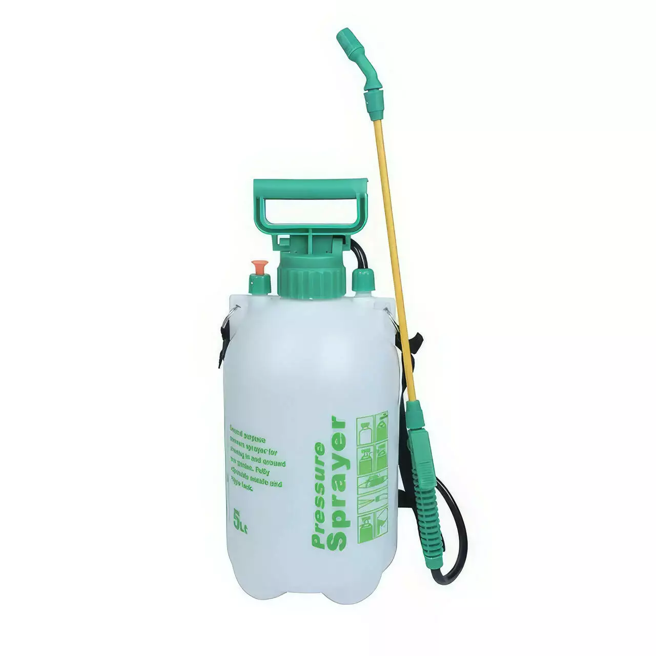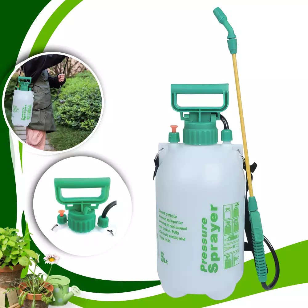 Обприскувач укомплектований зігнутим розпилювальним наконечником і подовженою латунною трубкою для зручного і точного розподілу розчину. Шланг і курковий клапан із фіксатором полегшують подачу рідини. Надійна конструкція стійка до тиску і забезпечує рівномірне розпилення. Ідеально підходить для обробки рослин засобами захисту, добривами та водою.