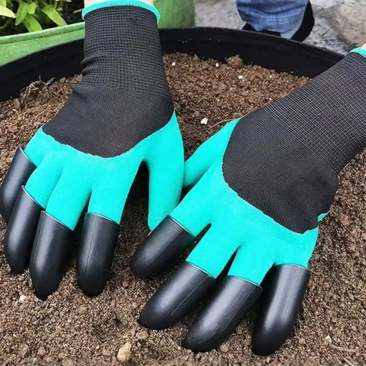 Основа рукавичок виготовлена з міцного латексу, який захищає руки від вологи, бруду та механічних пошкоджень. Пластикові наконечники-кігті з ABS-пластику дозволяють легко розпушувати ґрунт, копати та формувати лунки, значно прискорюючи роботу. Матеріал відрізняється зносостійкістю та довговічністю.