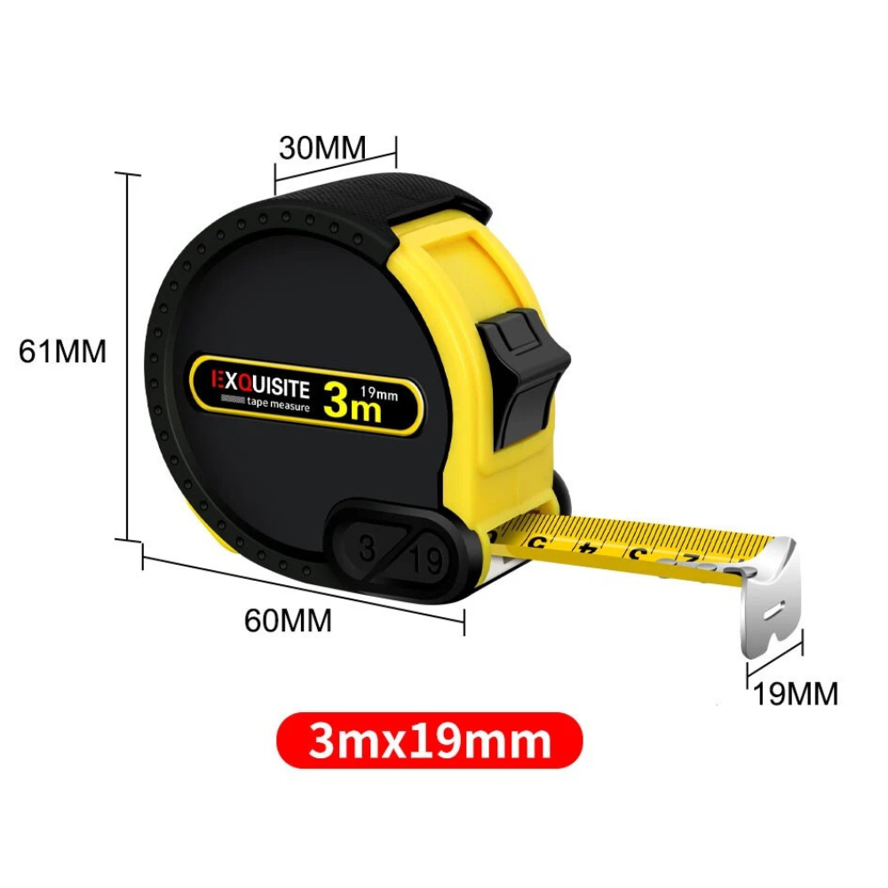 міцною сталевою стрічкою довжиною 3 метри та шириною 19 мм, що