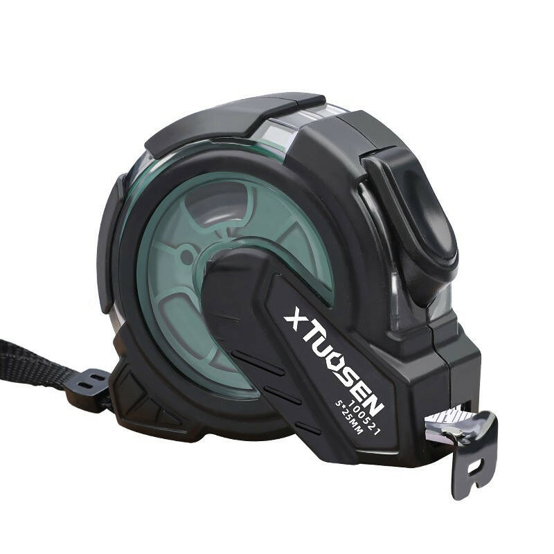 Рулетка оснащена автоматичним блокуванням, що дозволяє фіксувати стрічку в потрібному положенні для точних вимірювань. Петля на руку підвищує комфорт і безпеку під час роботи, запобігаючи падінню інструмента.