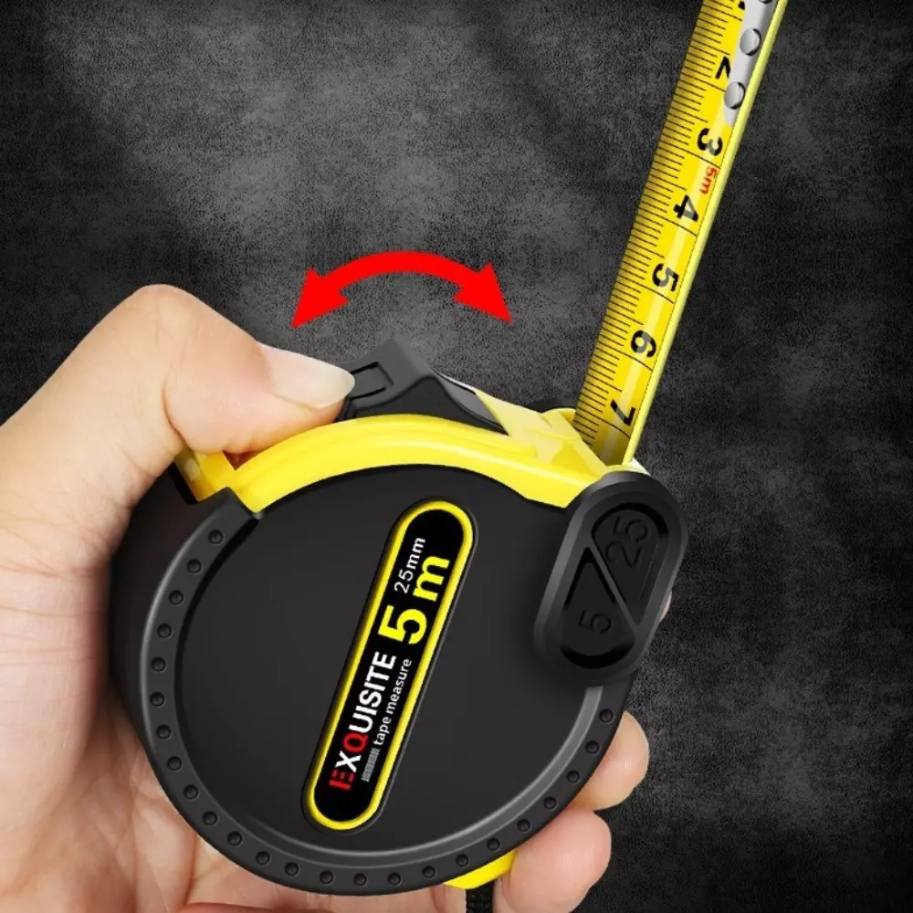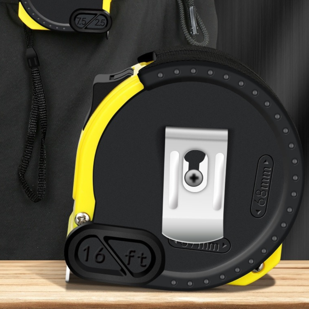 Рулетка має подвійну шкалу — метричну і дюймову, що робить її універсальною для різних завдань.