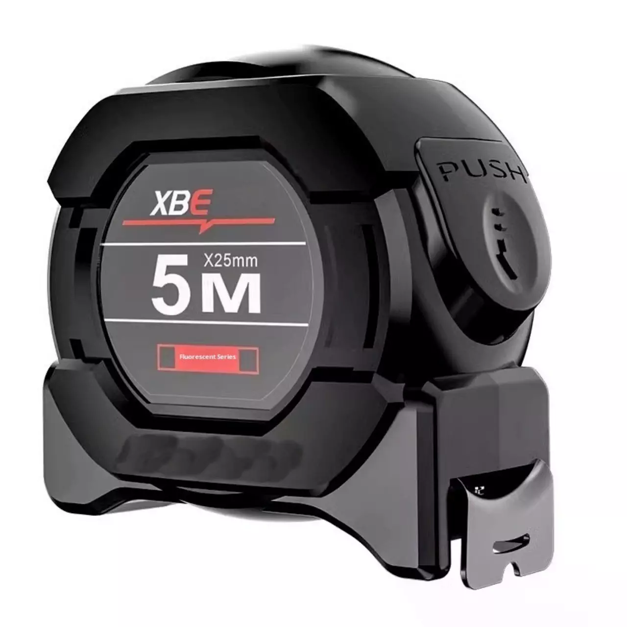 Рулетка будівельна вимірювальна 5м, з метричною світловою шкалою з автоматичним замком, протиударна чорна