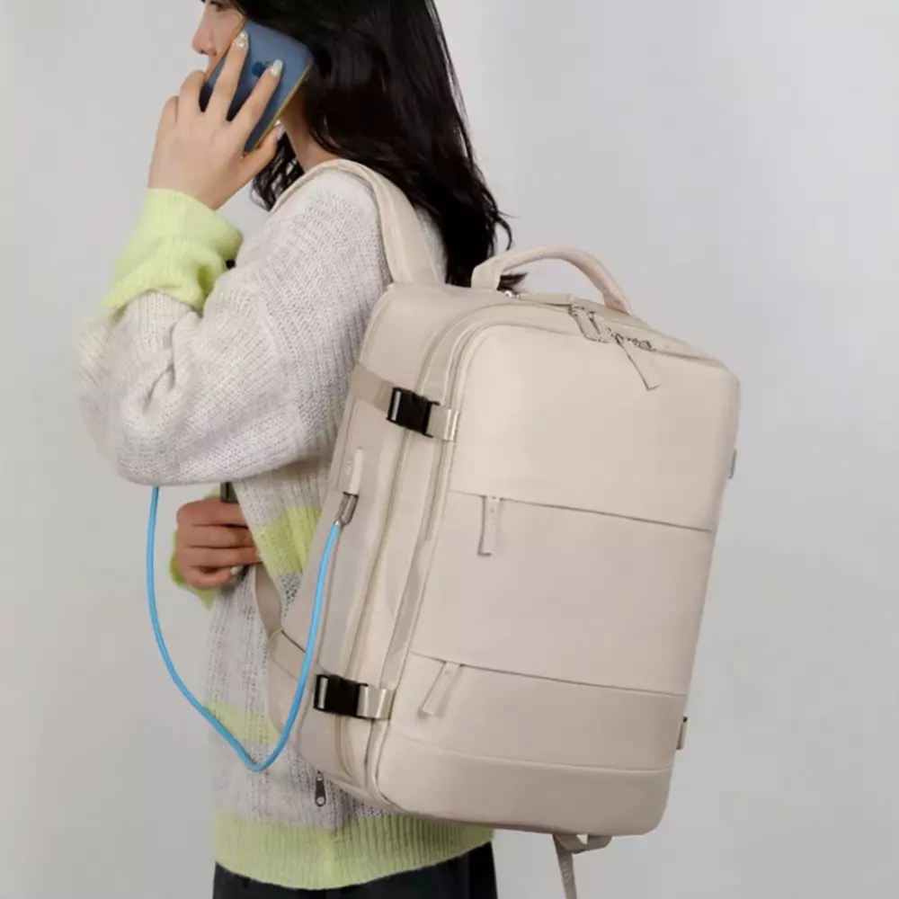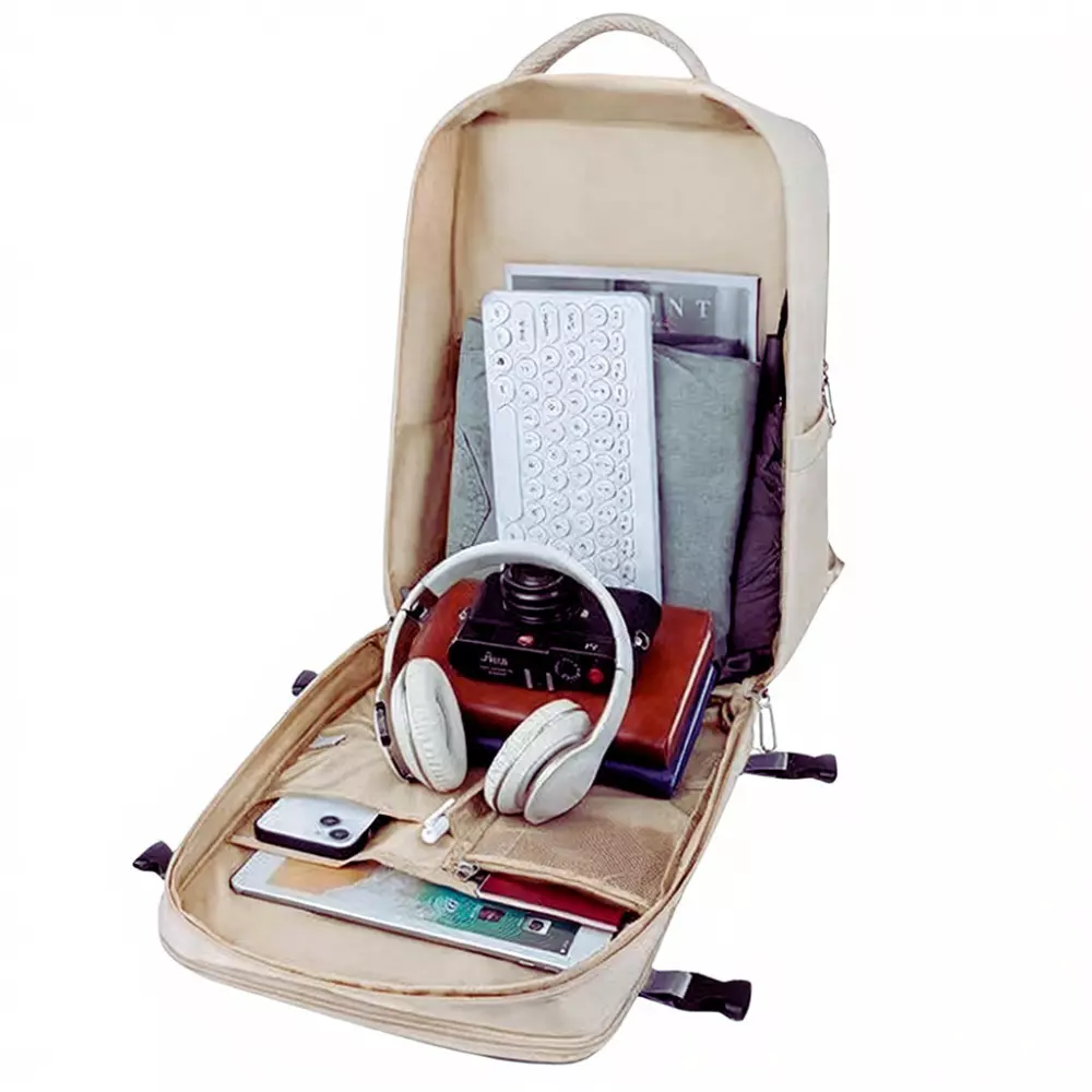 Рюкзак міський для подорожей дорожній з захистом від вологи матеріал з портом для зарядки 40х20х25 см, бежевий