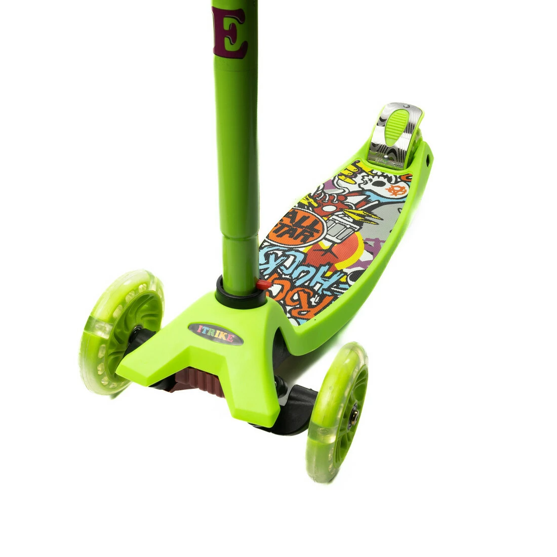 Самокат дитячий триколісний iTrike MAXI JR 3-055-1-GR зі світними колесами, кермо регулюється, Салатовий