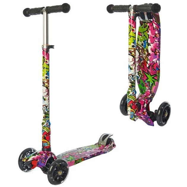 Самокат iTrike Maxi JR 3-055 допоможе весело та з радістю проводити час, сприятиме розвитку координації рухів та вмінню тримати рівновагу. Поворот коліс у самокаті здійснюється нахилом кермової стійки у бік повороту. Така система управління є більш зрозумілою для дітей. Самокат оснащений колесами з підсвічуванням і ножним гальмом, яке розміщено над заднім колесом. Самокат оздоблений оригінальним малюнком. Самокат легко складається для зручності зберігання та транспортування.