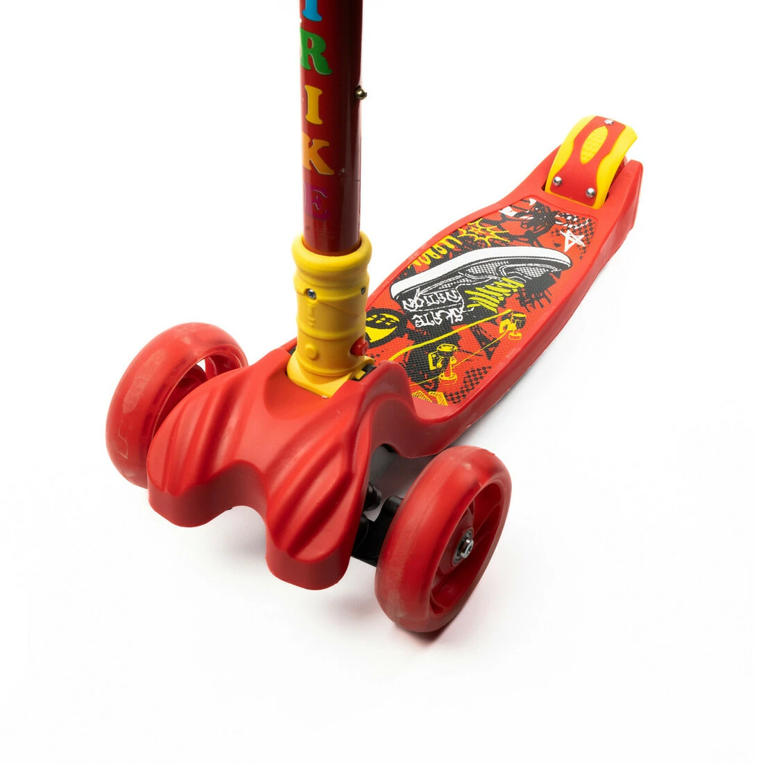 Самокат оснащений трьома колесами, які забезпечують стійкість та безпеку.