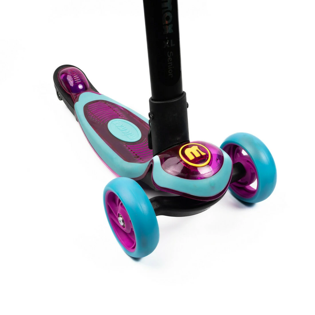 Самокат оснащений трьома колесами, які забезпечують стійкість та безпеку.