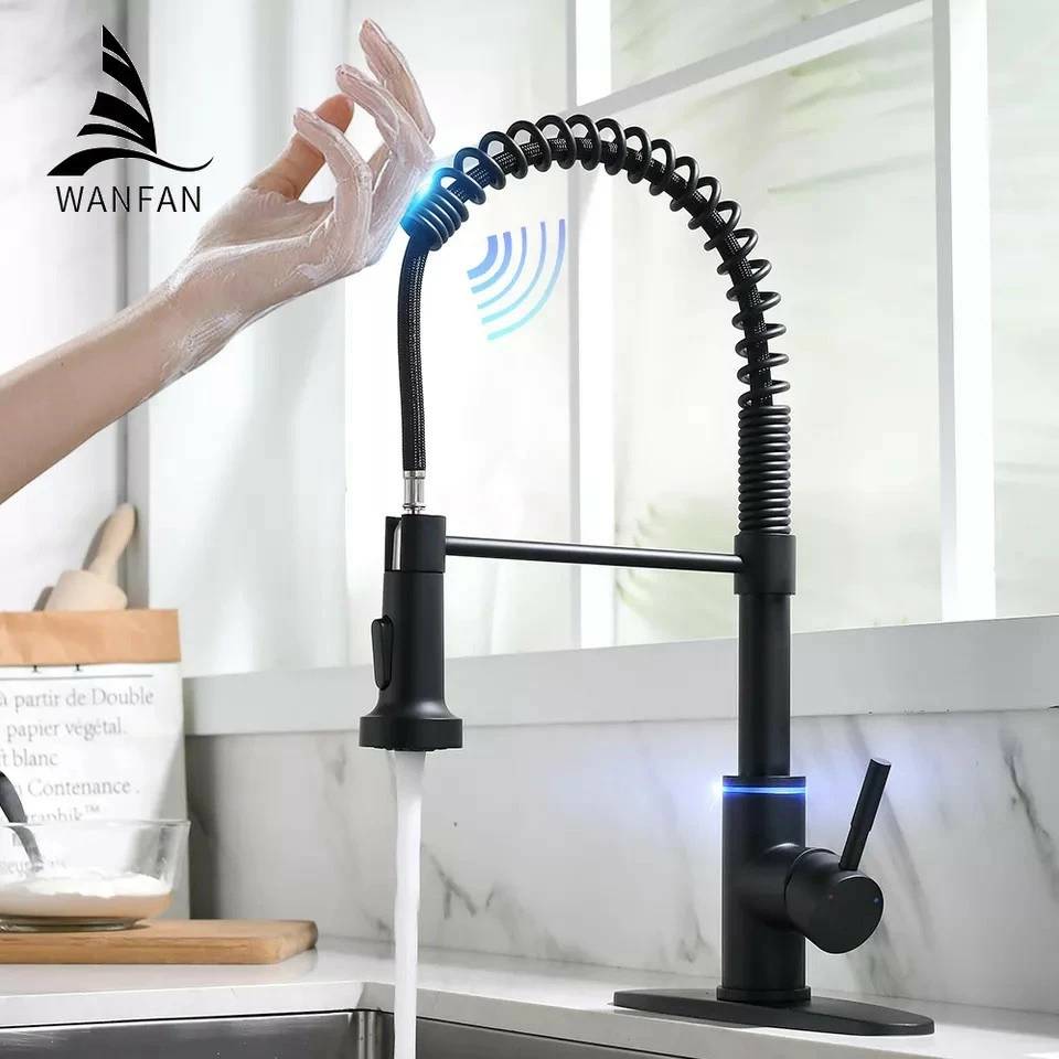 Сенсорний змішувач для кухонної раковини WanFan з висувним виливом, кухонний кран з температурним підсвічуванням