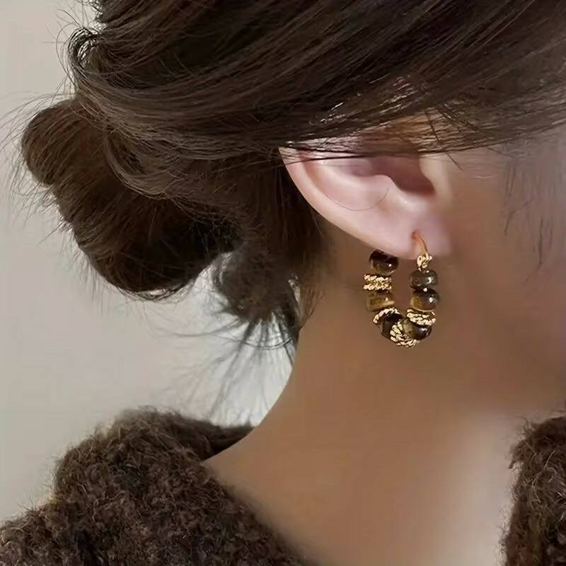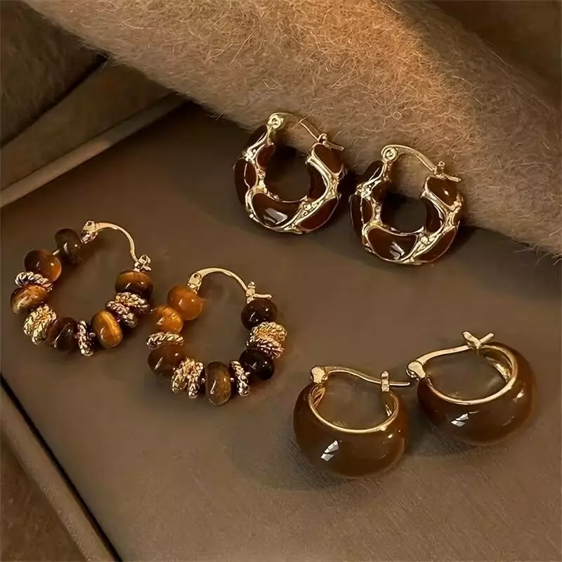 Набір жіночих сережок 3 пари в теплому золотисто-коричневому